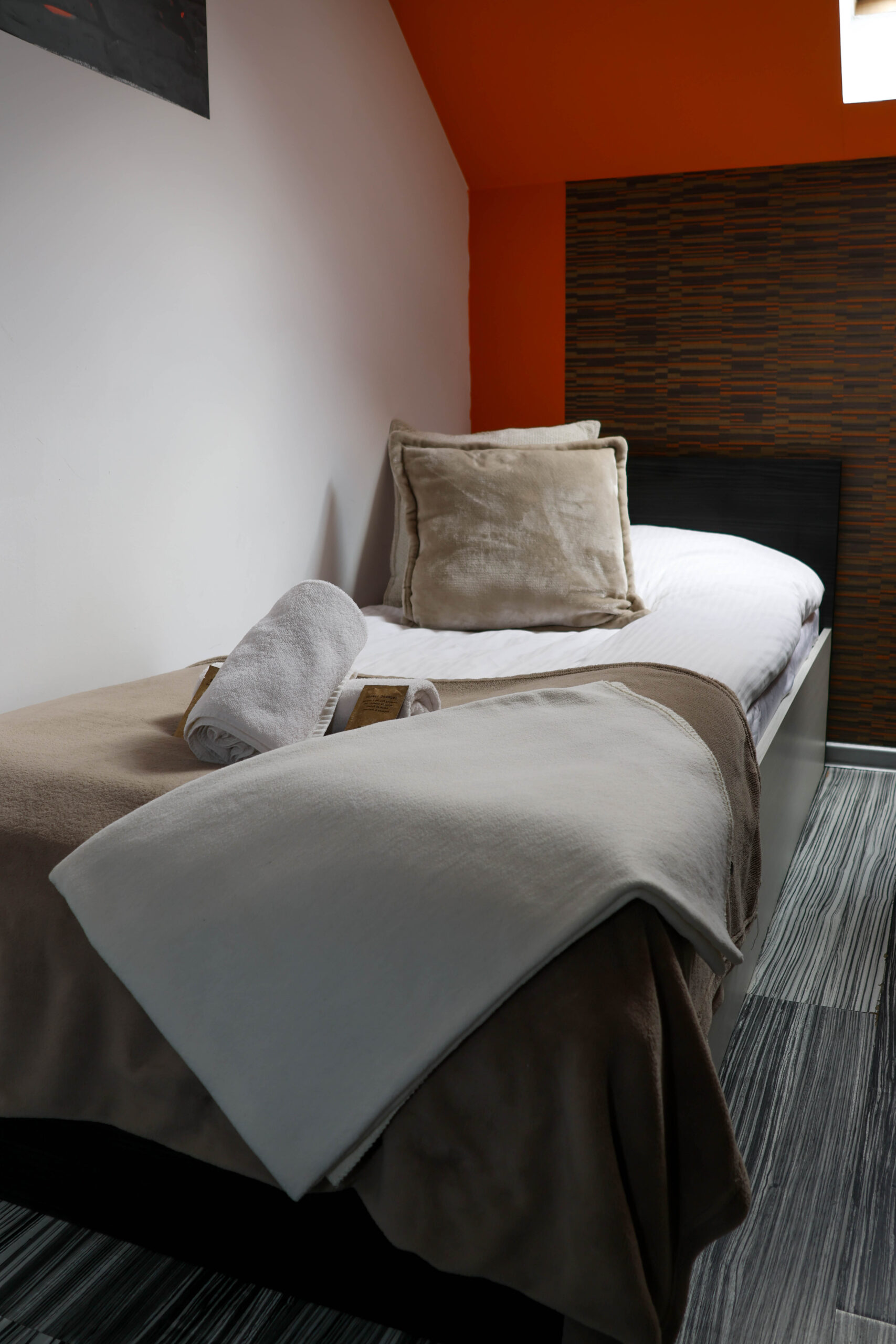 Oferujemy przytulny i funkcjonalny pokój jednoosobowy o powierzchni 14 m², idealny dla osób podróżujących samotnie. Pokój zapewnia doskonałe warunki zarówno do pracy, jak i wypoczynku, a jego dużym atutem jest widok na ogród oraz miasto – połączenie spokoju z miejskim klimatem.